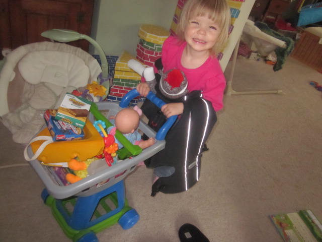 Some of our fun around the house. Going to the market with baby (while Ellie also carries her sock monkey stuffed animal in the baby Bjorn!)... and (below) doing art with glitter glue I found at the dollar store. Messy but very fun!